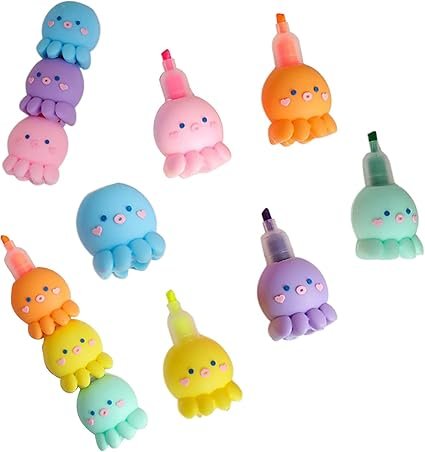 MBVBN 6 PCS Colorful Octopus Shaped Highlighter, Pastel Highlighter Set Cute Silicone Octopus Highlighter Pens for Adults Kids Students Writing Graffiti School Office