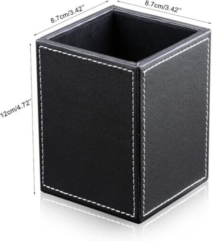 KINGFOM PU Leather Square Pens Pencils Holder Cup Desktop Stationery Organizer Case Office Accessories Container Box (black) Best Office Accessories to Improve Comfort Must-Have Office Accessories to Boost Productivity and Style