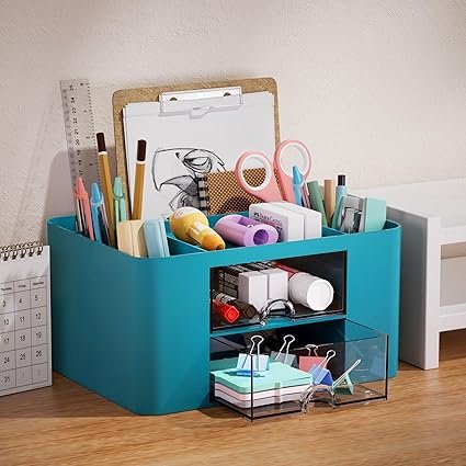 • ✏️【Convenient And Multifuction】This Desk Caddy is no installation required not only perfect for storing your desktop stationery and many other desk widgets but also great for storing your makeup brushes, nail polishes, lipsticks, and other small personal items sorted by type. The transparent drawer makes it way easier to find what you need! and You can put any other daily necessities on the organizer, It helps you keep your stuff organized.